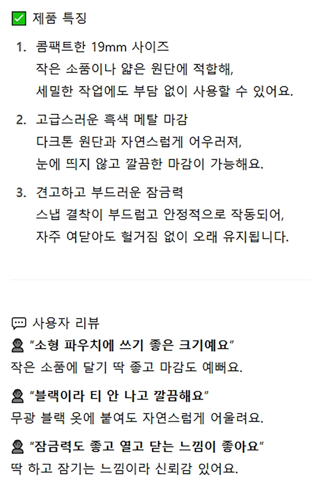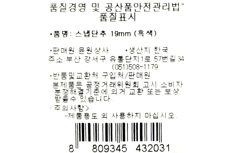바느질만으로 손쉽게 부착 국산 단추 19mm 흑색 5봉