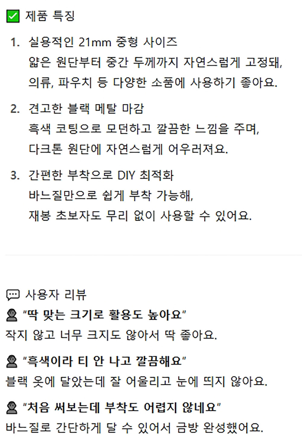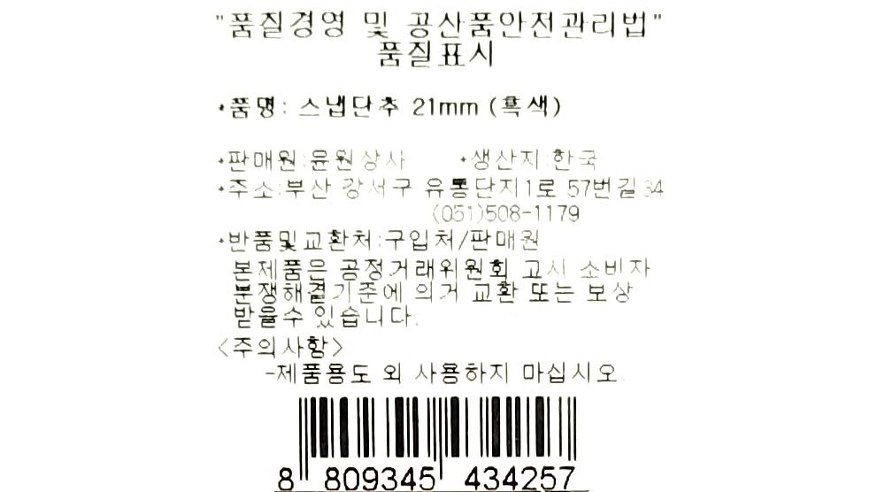바느질만으로 손쉽게 부착 국산 단추 21mm 흑색 5봉