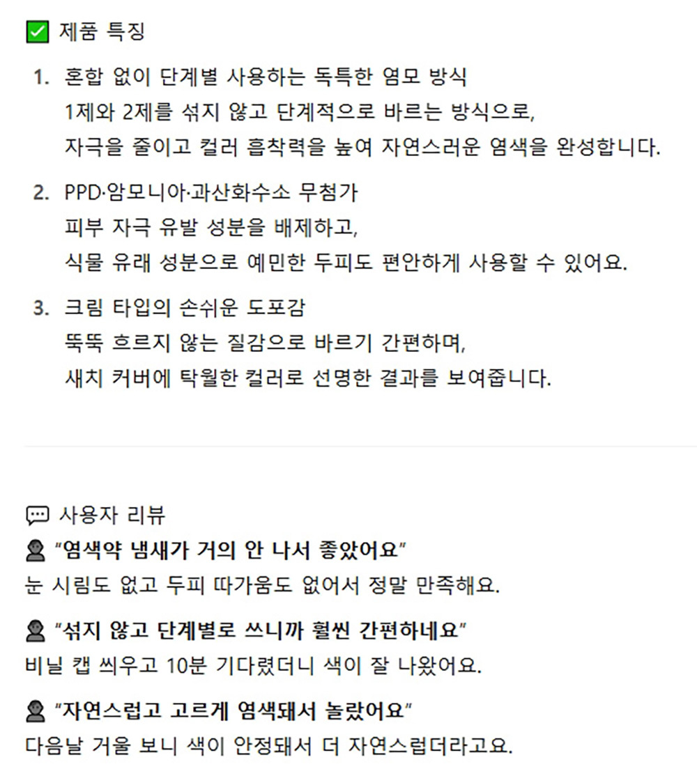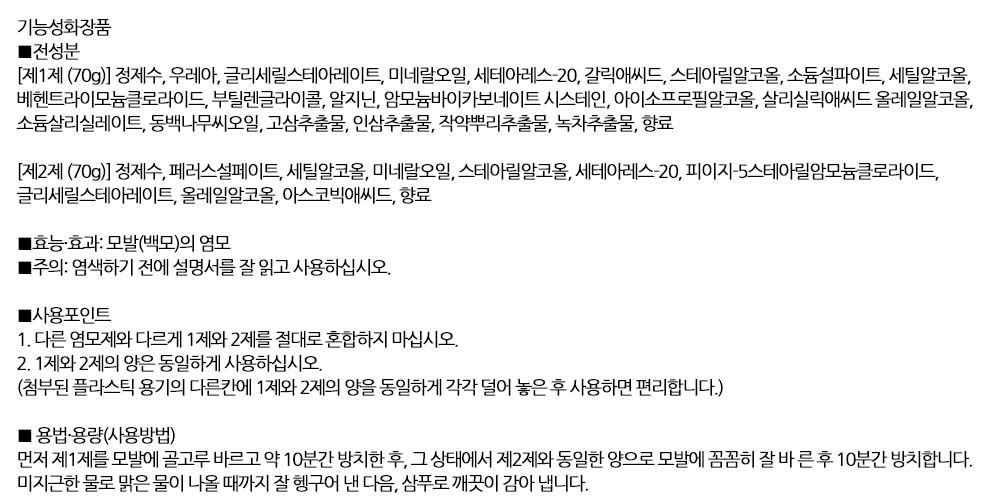 식물유래성분 순한염모제 간편 빠른염색 자연스런흑색