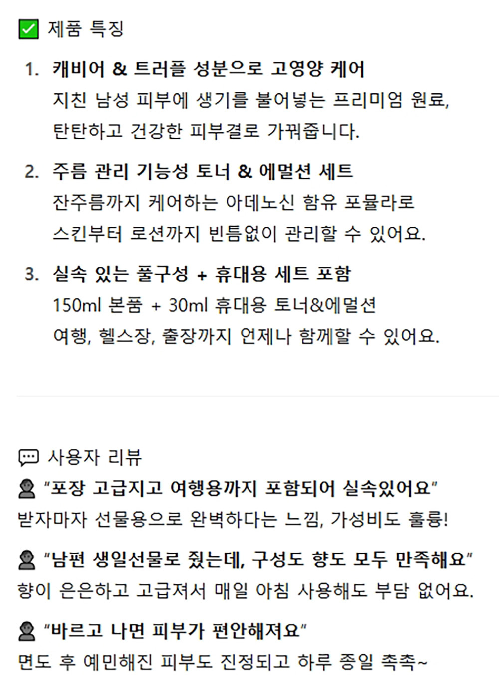 탄탄하고 건강한 피부결로 가꿔줍니다 남성화장품세트