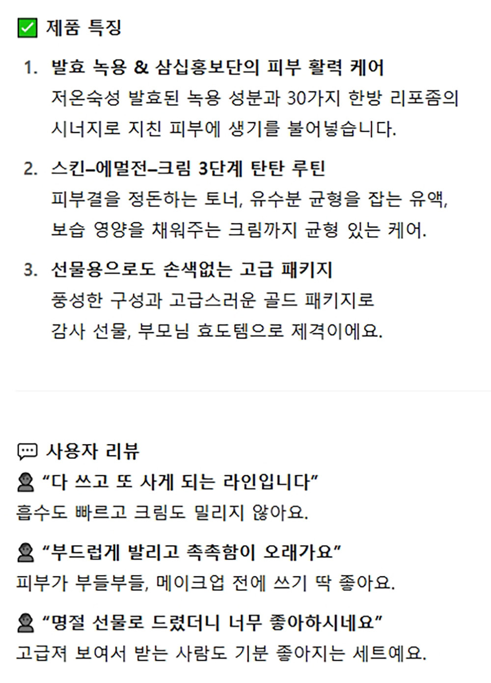 저온숙성 발효녹용성분 지친피부 한방 여성화장품세트