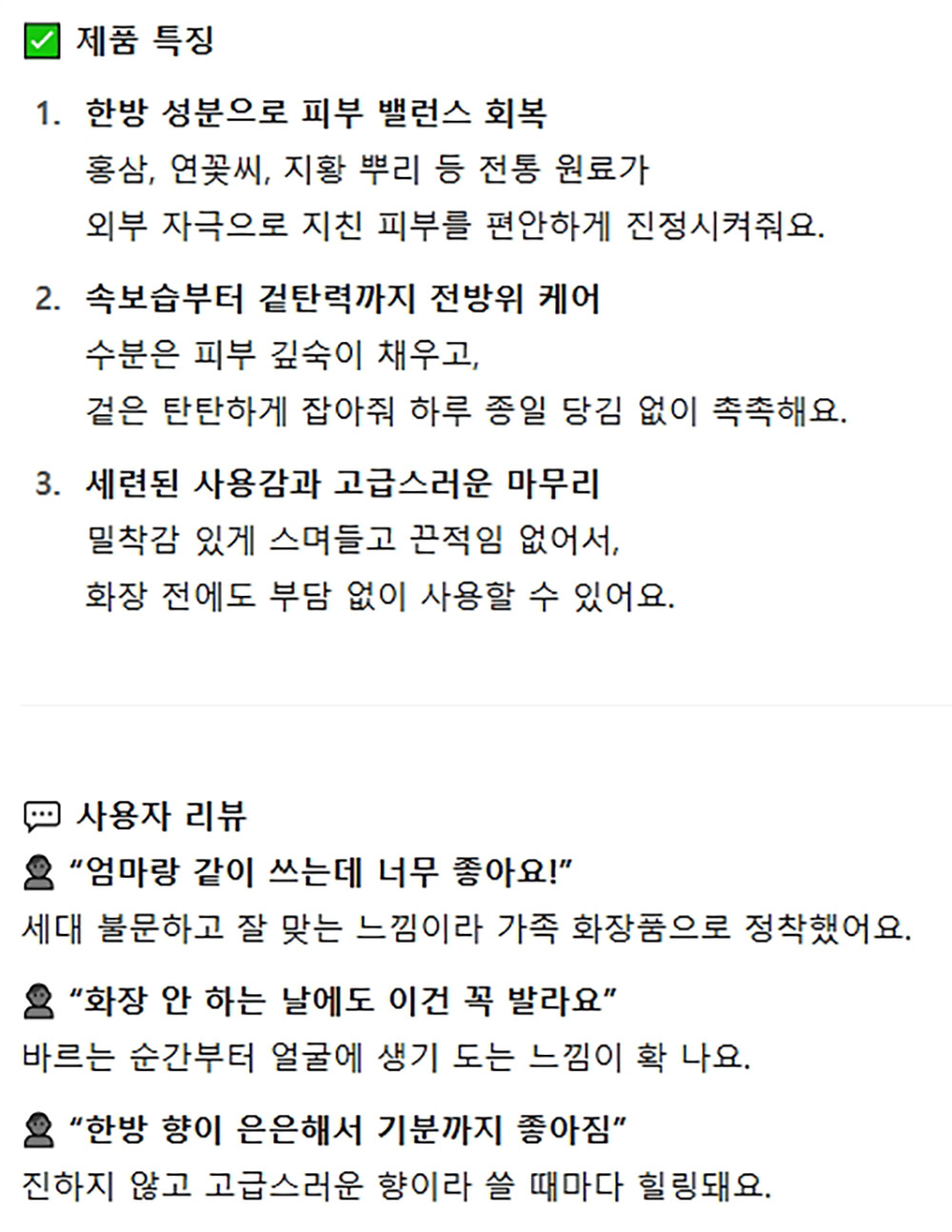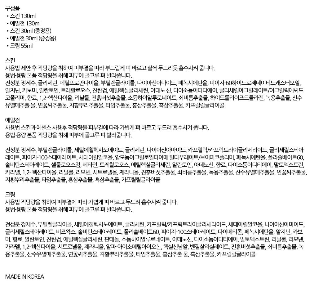 지친피부 편안하게 진정시켜줘요 한방 여성화장품세트