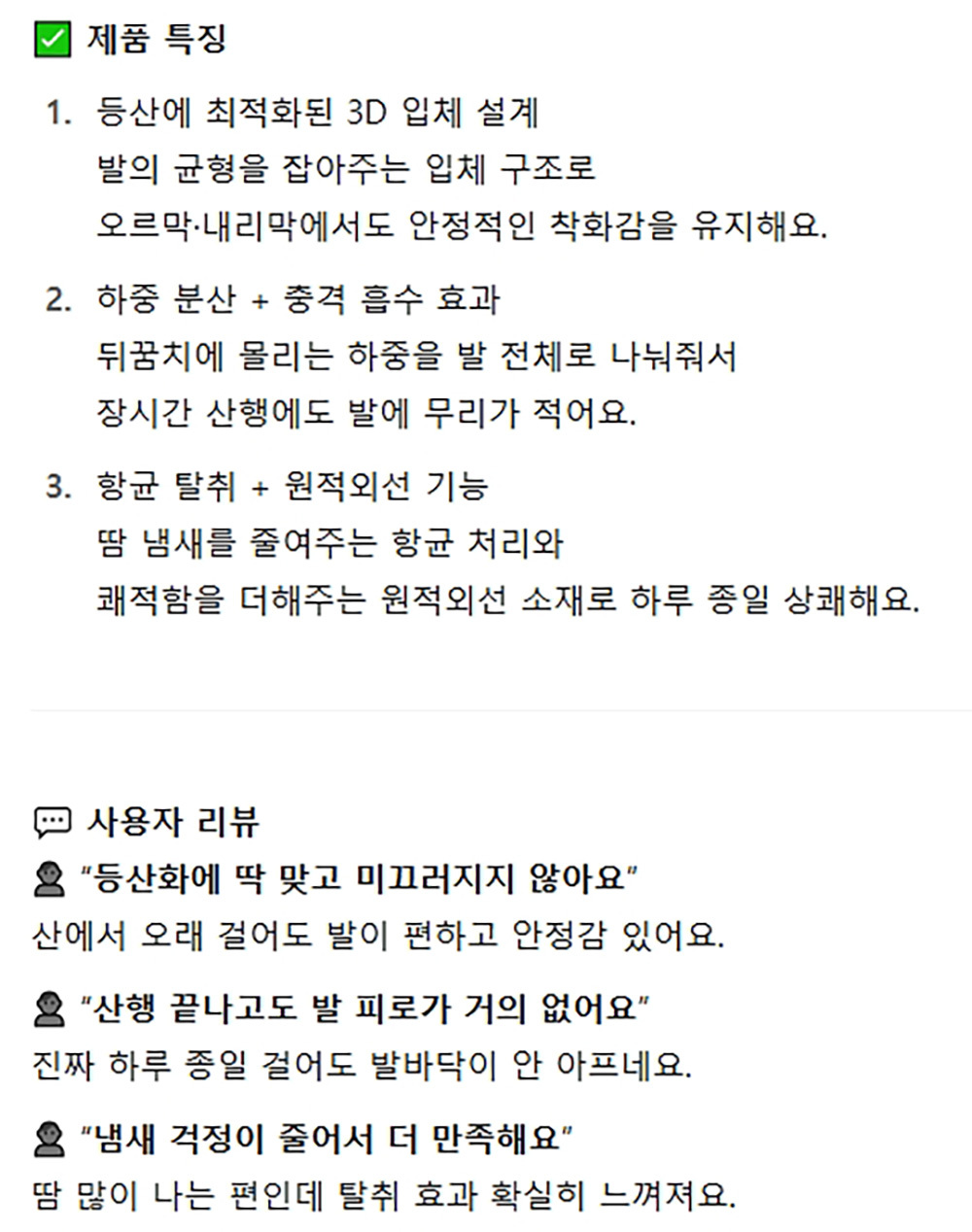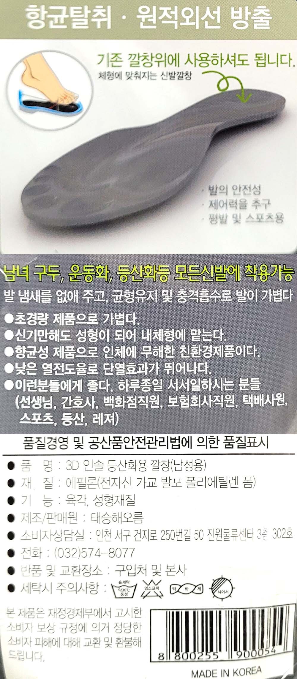 3일간만 착용해보세요 스포츠 군화 등산화용 남성깔창