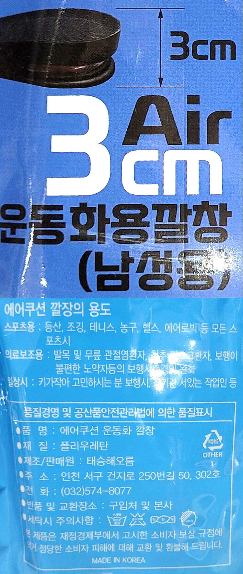 건강한 발 편안한 걸음걸이 키높이 남성용 깔창 3cm