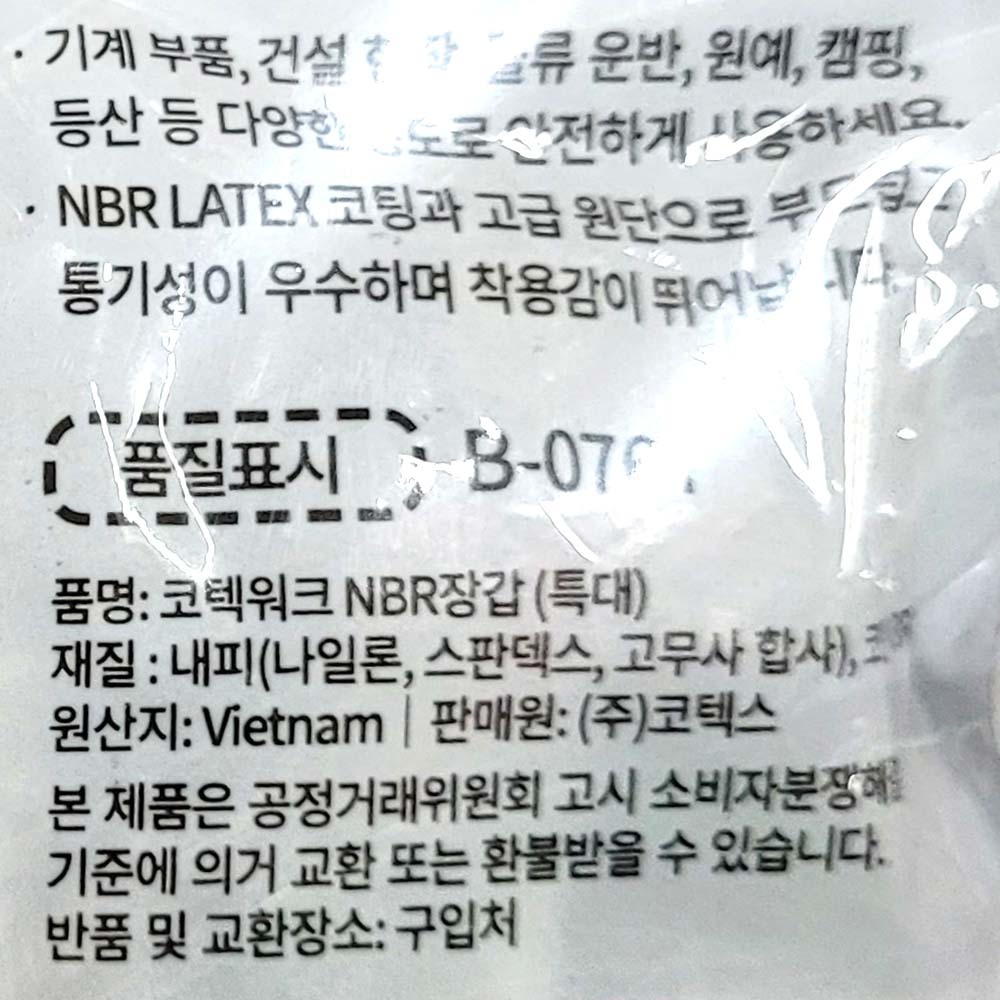 정비작업 물류운반 원예장갑 NBR장갑 특대 XL 10켤레