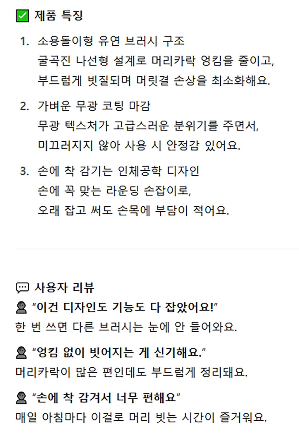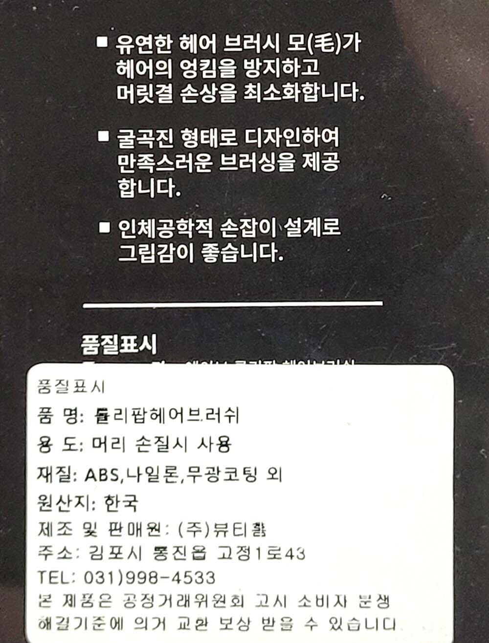 헤어 엉킴방지 굴곡진 형태 디자인 블랙 헤어브러쉬