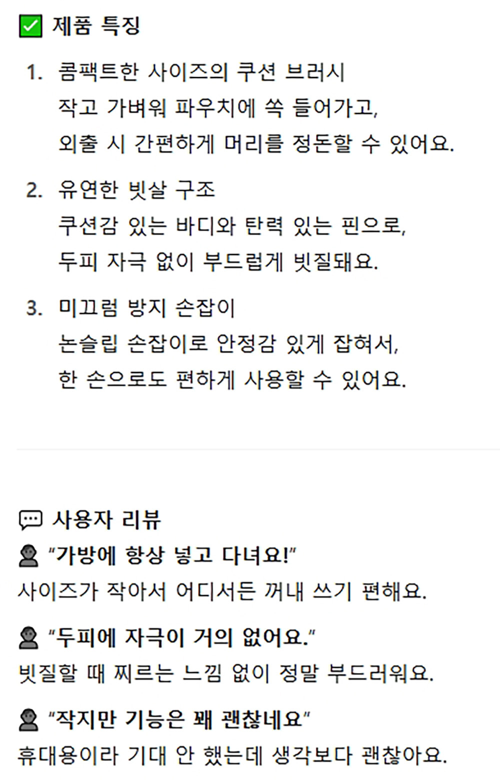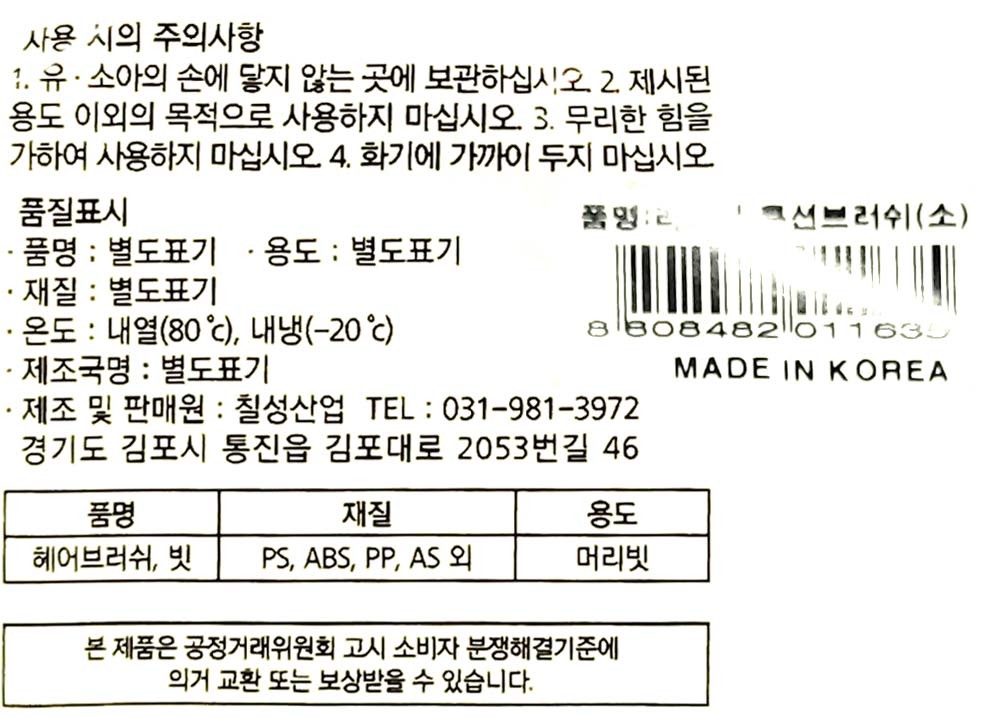 콤팩트한 사이즈 유연한 빗살구조 헤어 쿠션브러쉬 소