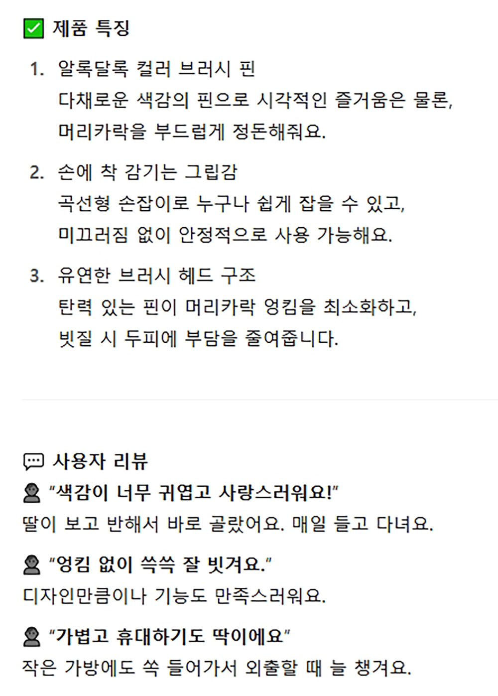 손에 착 감기는 그립감 알록달록 핑크 헤어브러쉬 중