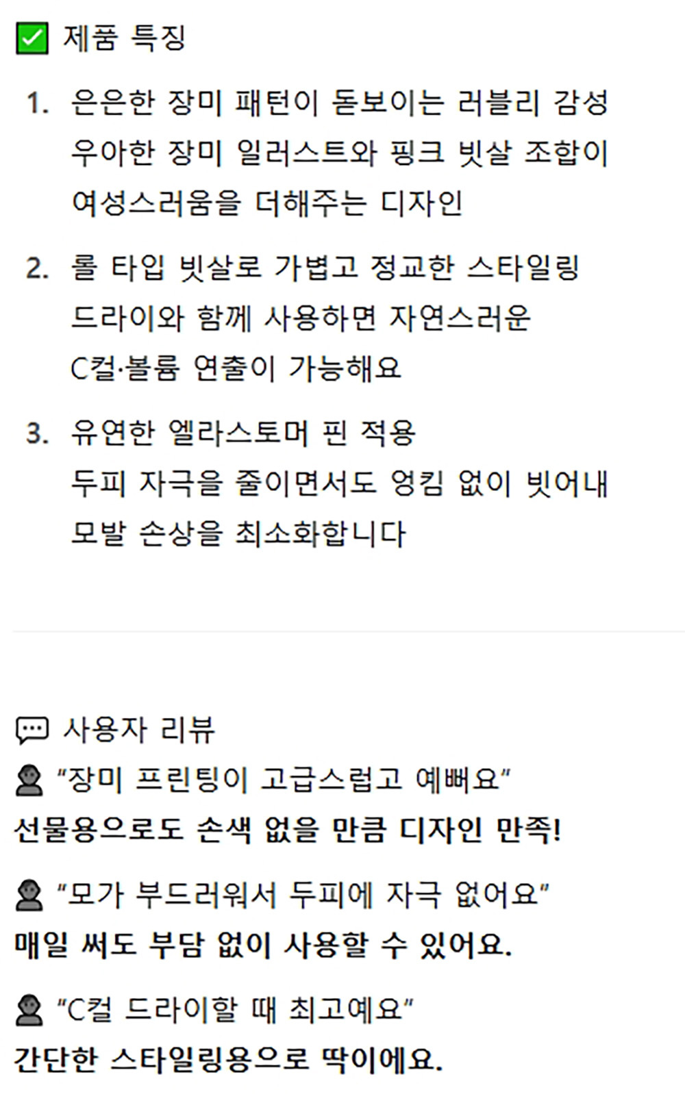은은한 장미패턴이 돋보이는 장미 플라워 헤어롤 핑크
