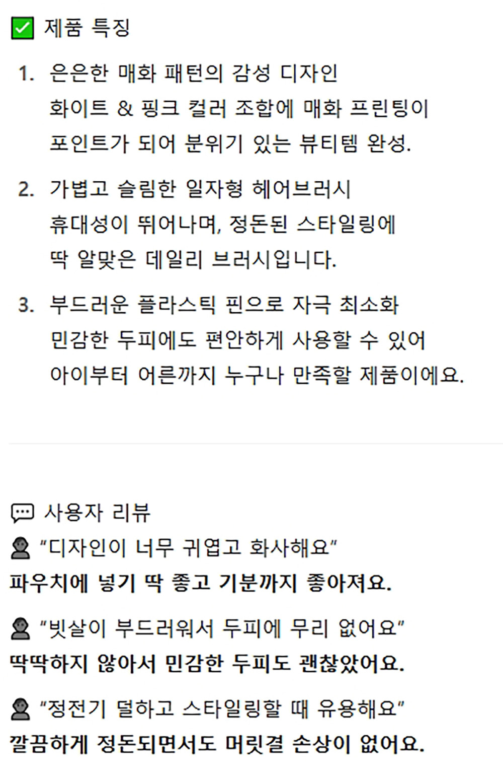 은은한 매화패턴 감성디자인 플라워 헤어롤 브러쉬
