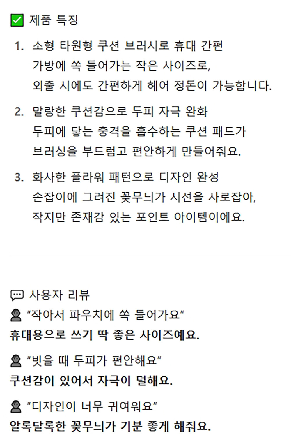 고급스러운 화이트 플라워 타원 쿠션 헤어브러쉬 소