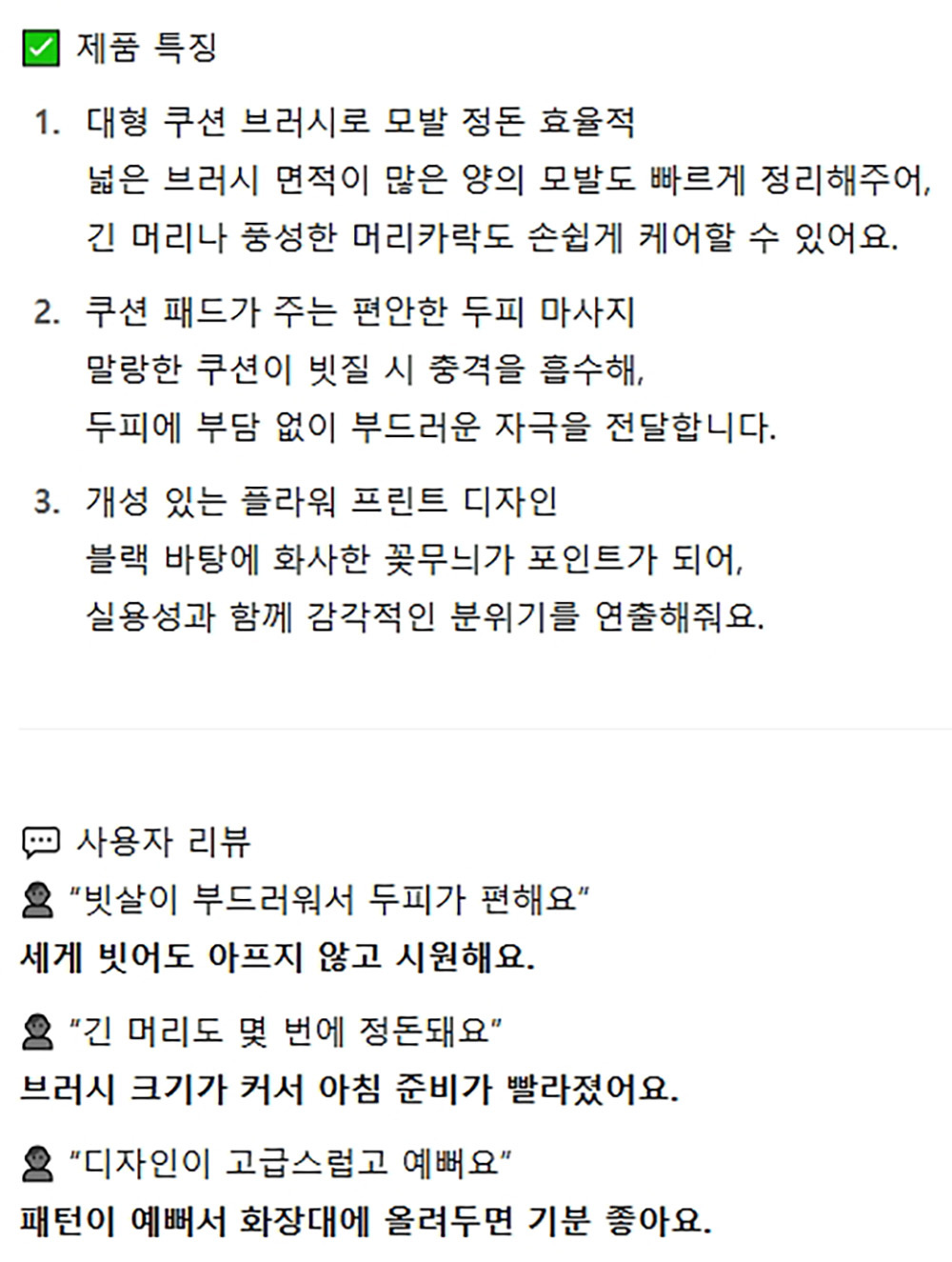 두피가 편해요 사각형 쿠션 헤어브러시 대 블랙
