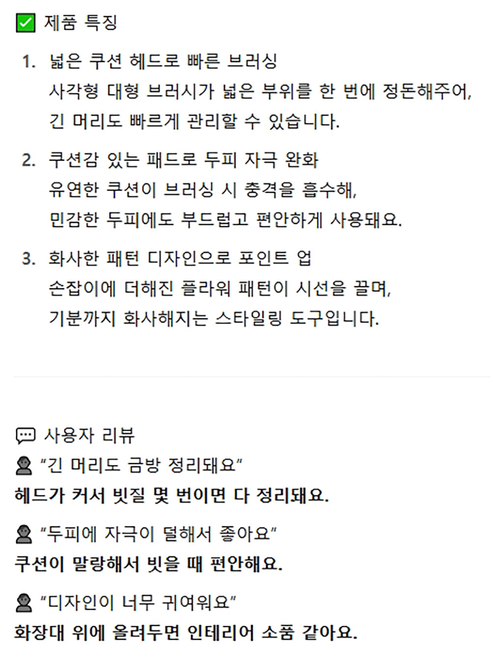 두피가 편해요 사각형 쿠션 헤어브러시 대 화이트