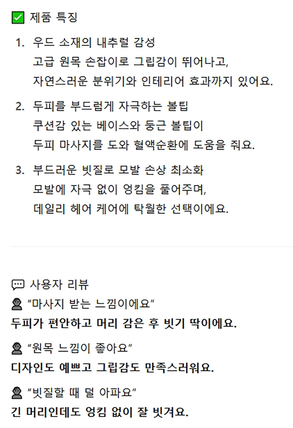원목 느낌이 좋아요 부드러운 빗질 우드 헤어 브러쉬