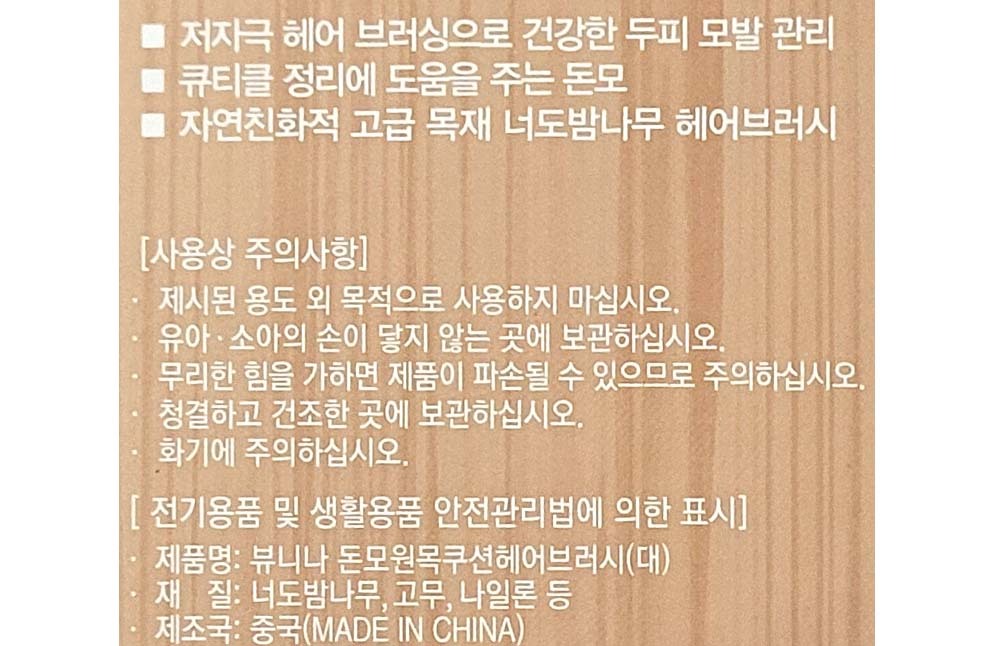 너도 밤나무 원목 와이드헤드 원목쿠션 헤어브러시 대