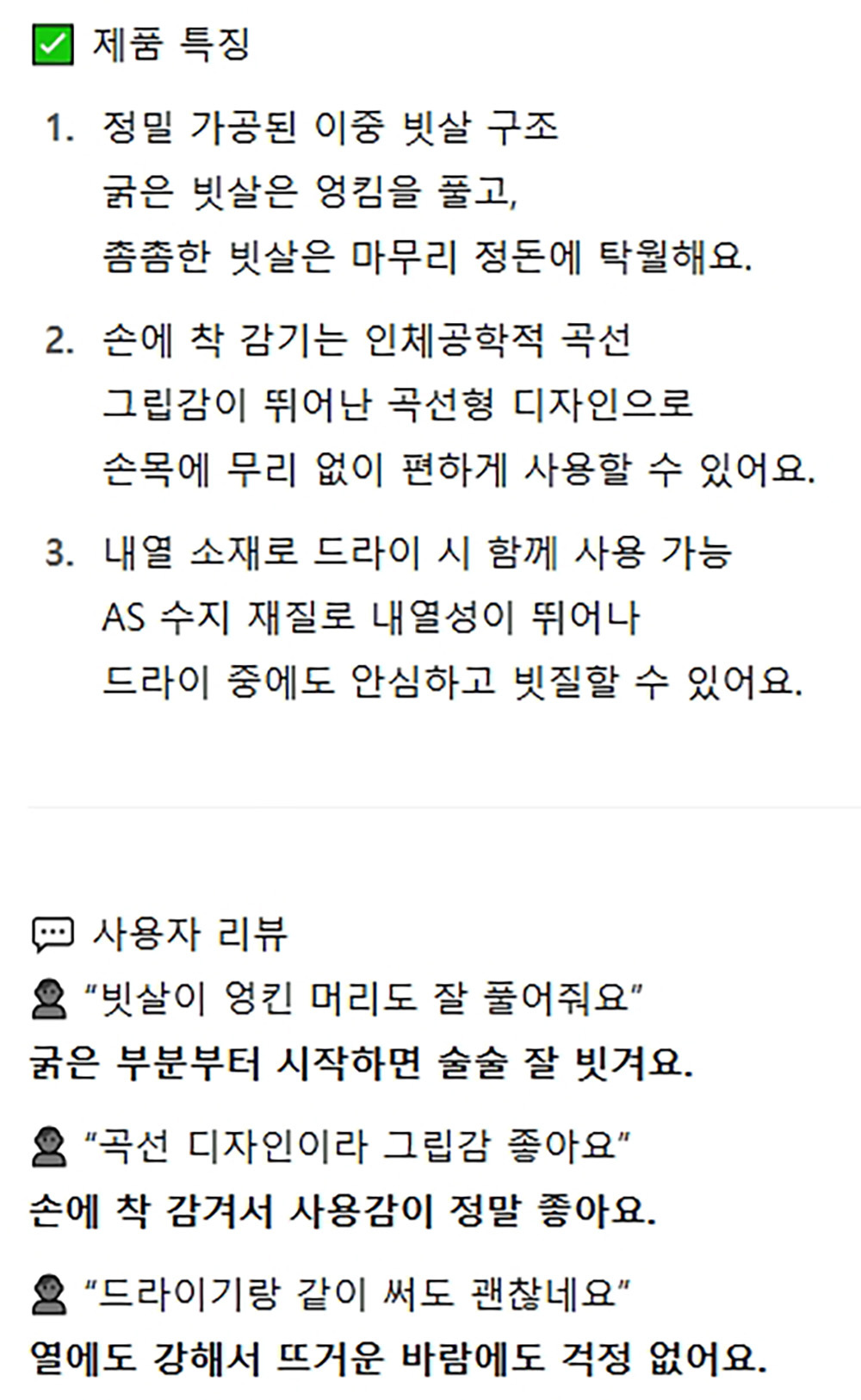 촘촘한 빗살이 엉킨 머리도 잘 풀어줘요 헤어빗