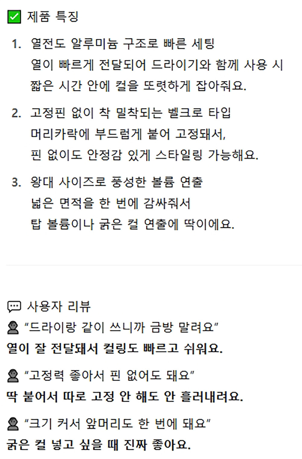 열전도 알루미늄 구조 빠른세팅 헤어구르프 긴형 왕대