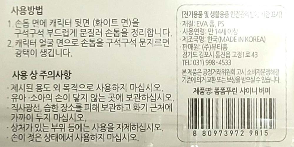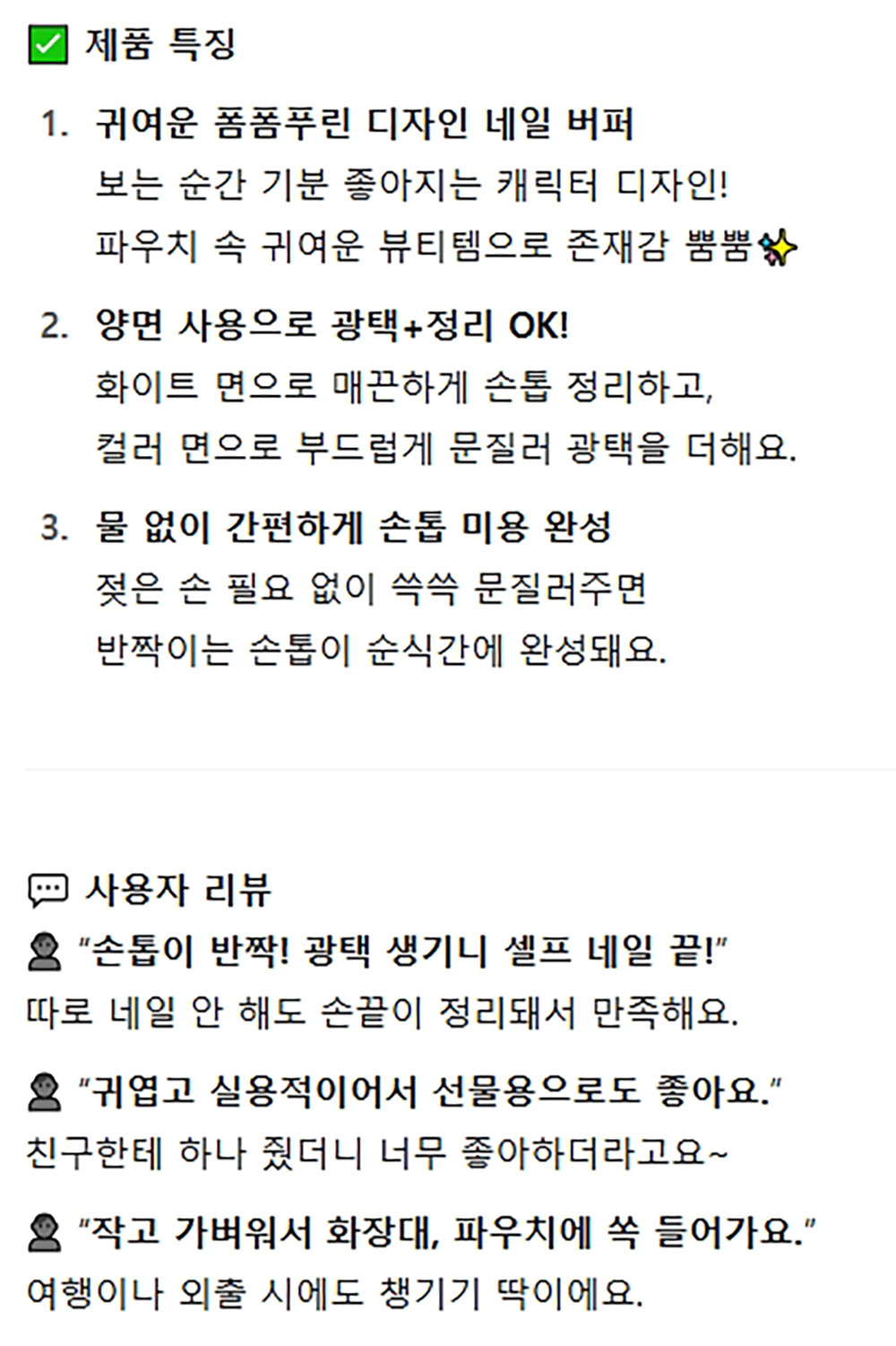 양면을 손톱에 문지르면 반짝 캐릭터 네일버퍼