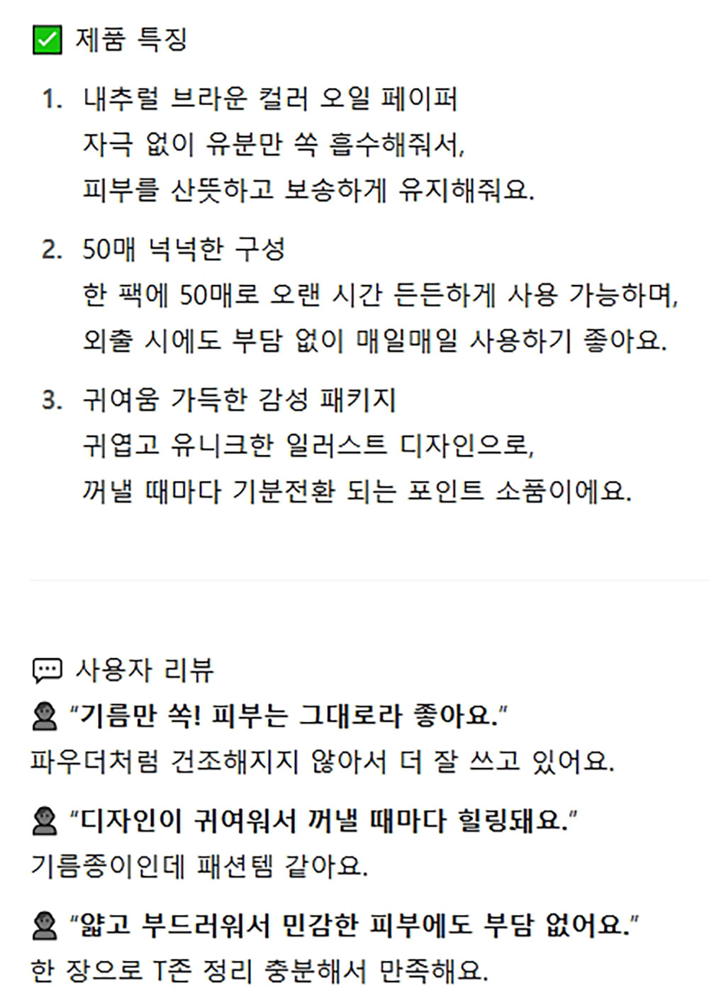 유분을 흡수하여 피부를 보송하게 관리 기름종이 50매