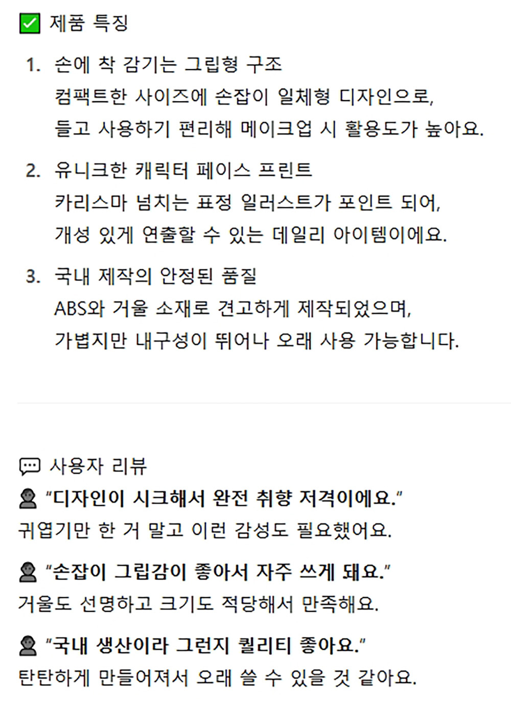 손에 착 감기는 그립형 구조 심플 손거울