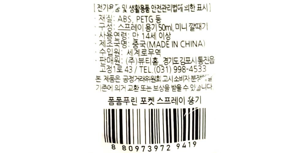 슬림한 포켓형 디자인 휴대용 스프레이 용기 50ml