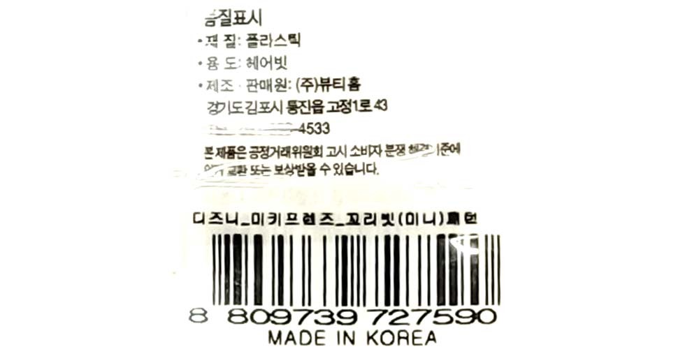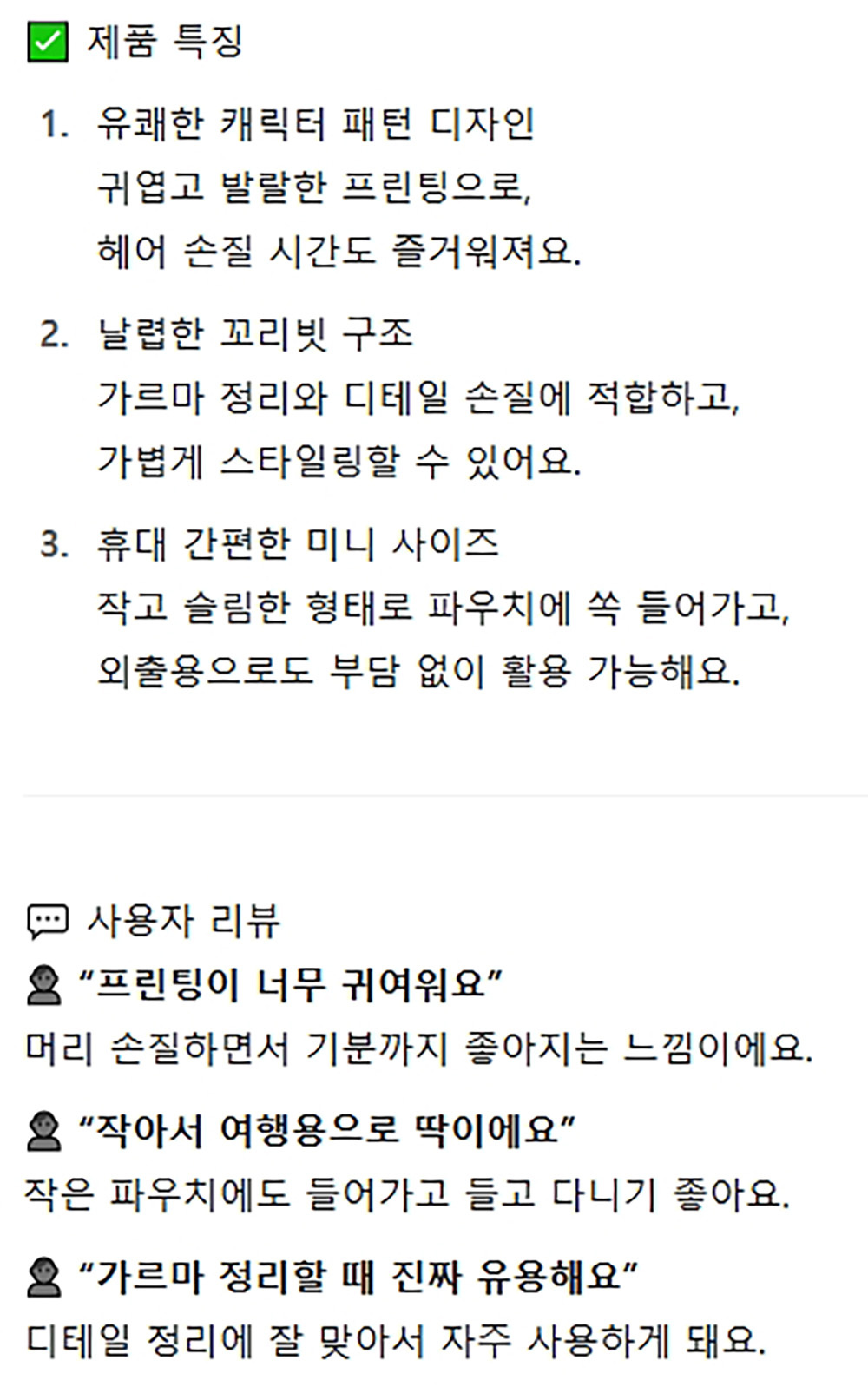 유쾌한 캐릭터 패턴디자인 핑크 미니 헤어꼬리빗