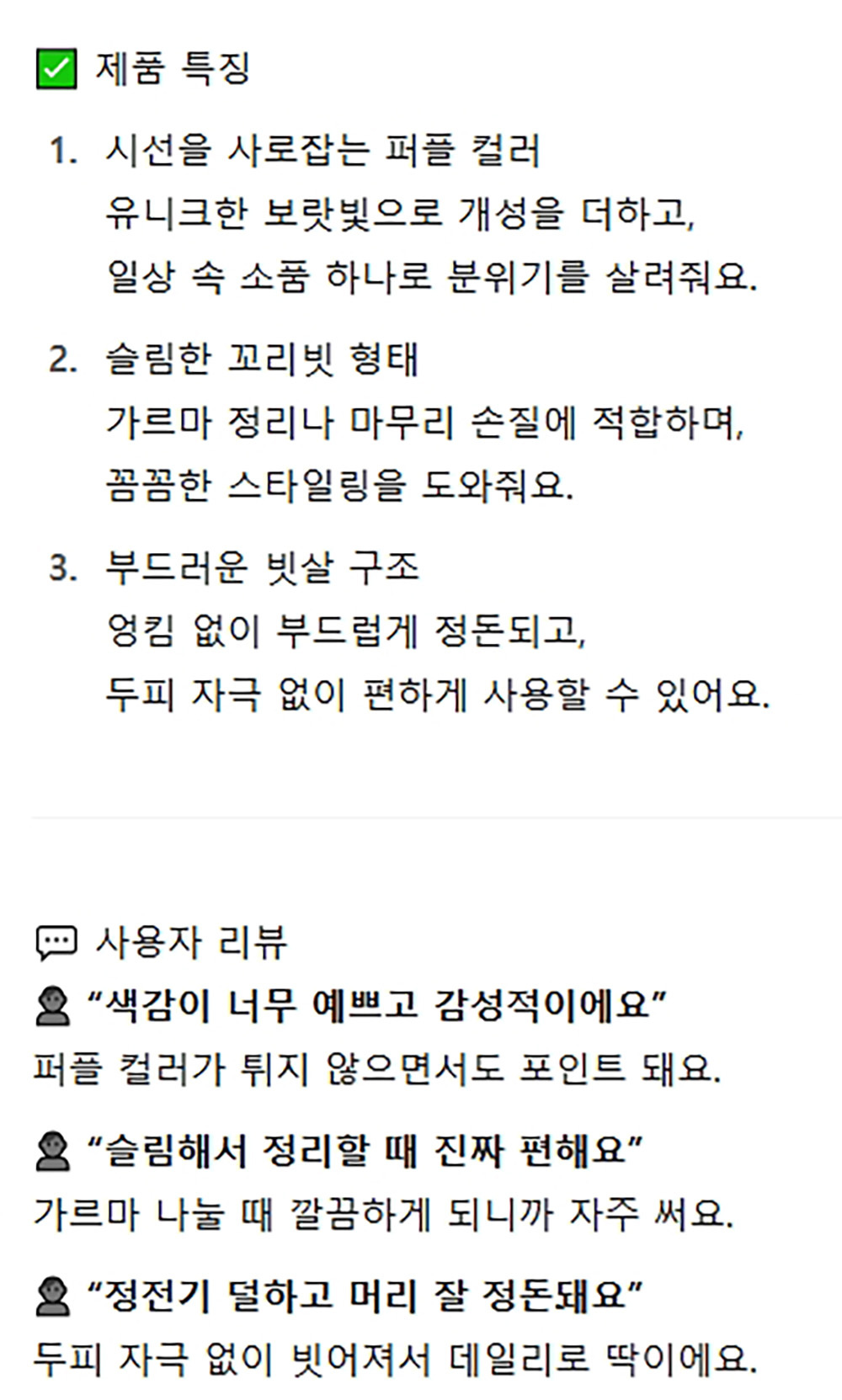 시선을 사로잡는 퍼플 컬러 미니 헤어꼬리빗