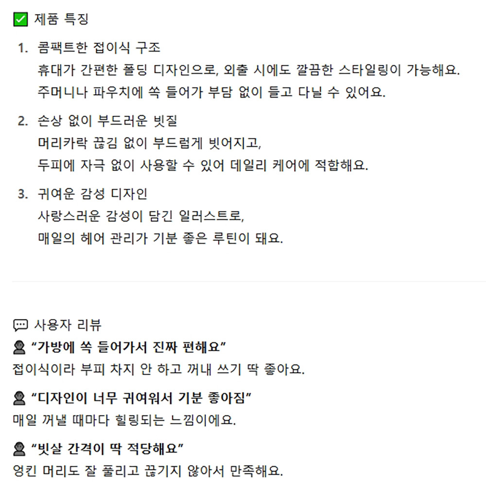 귀여운 감성 디자인 핑크 접이식 헤어꼬리빗