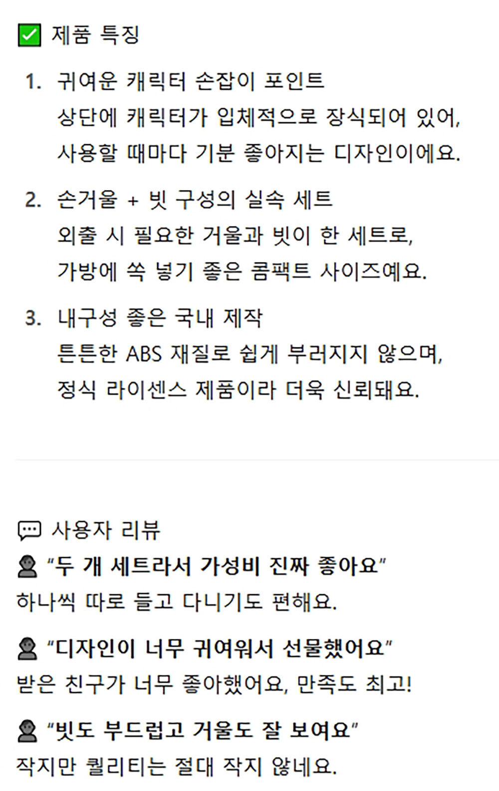 아래 상품정보는 옵션 및 사은품 정보 등 실제 상품과 차이가 있을수 있습니다