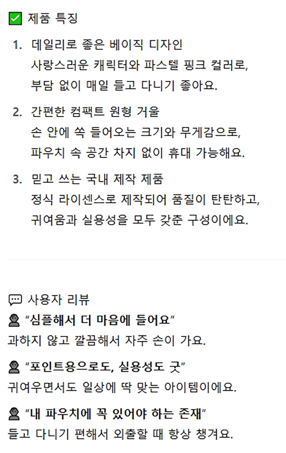 사랑스러운 캐릭터 파스텔 핑크 컬러 원형 버튼거울