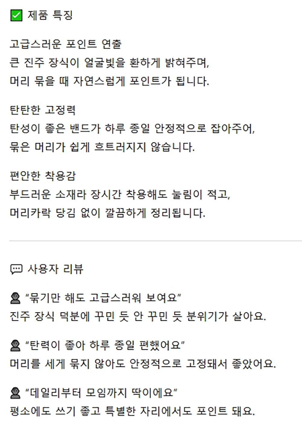 큰 진주 장식 머리 묶을때 포인트 헤어 머리끈 대 5입