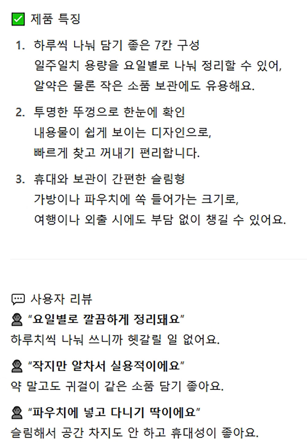 요일별로 깔끔하게 정리돼요 휴대용 7칸통