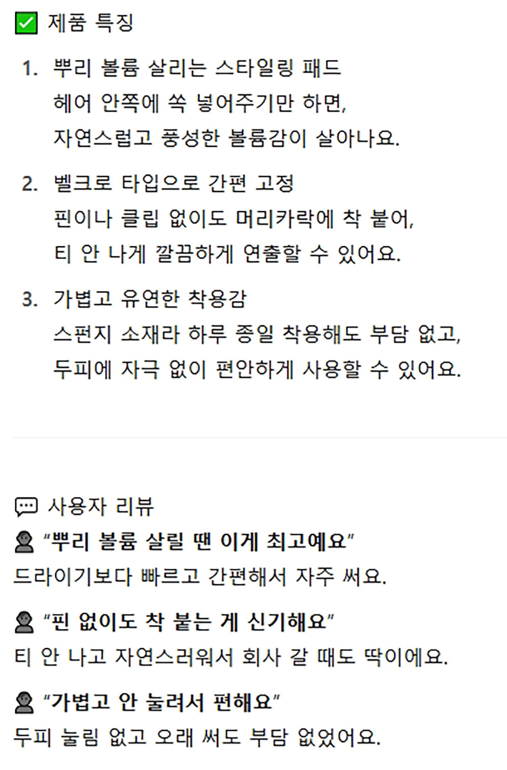 자연스럽게 뿌리 볼륨 살리는 헤어패드 10입
