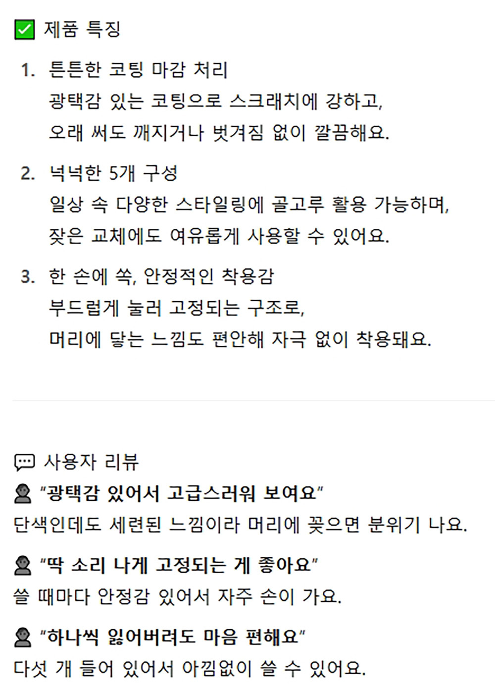 튼튼한 코팅 마감 처리 헤어 똑딱핀 5P 5봉
