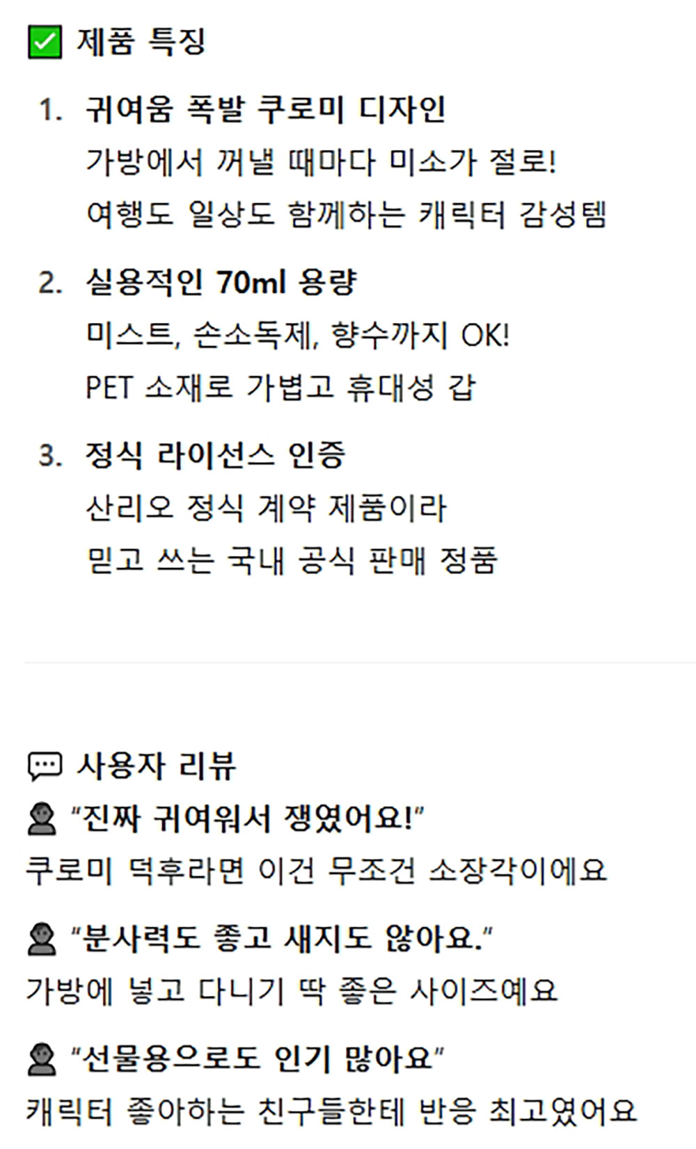 여행갈때 함께하는 실용적인 스프레이 용기 70ml