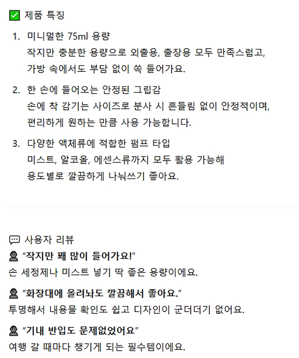 촘촘한 안개분사 펌프 여행용 리필용기 스프레이 75ml