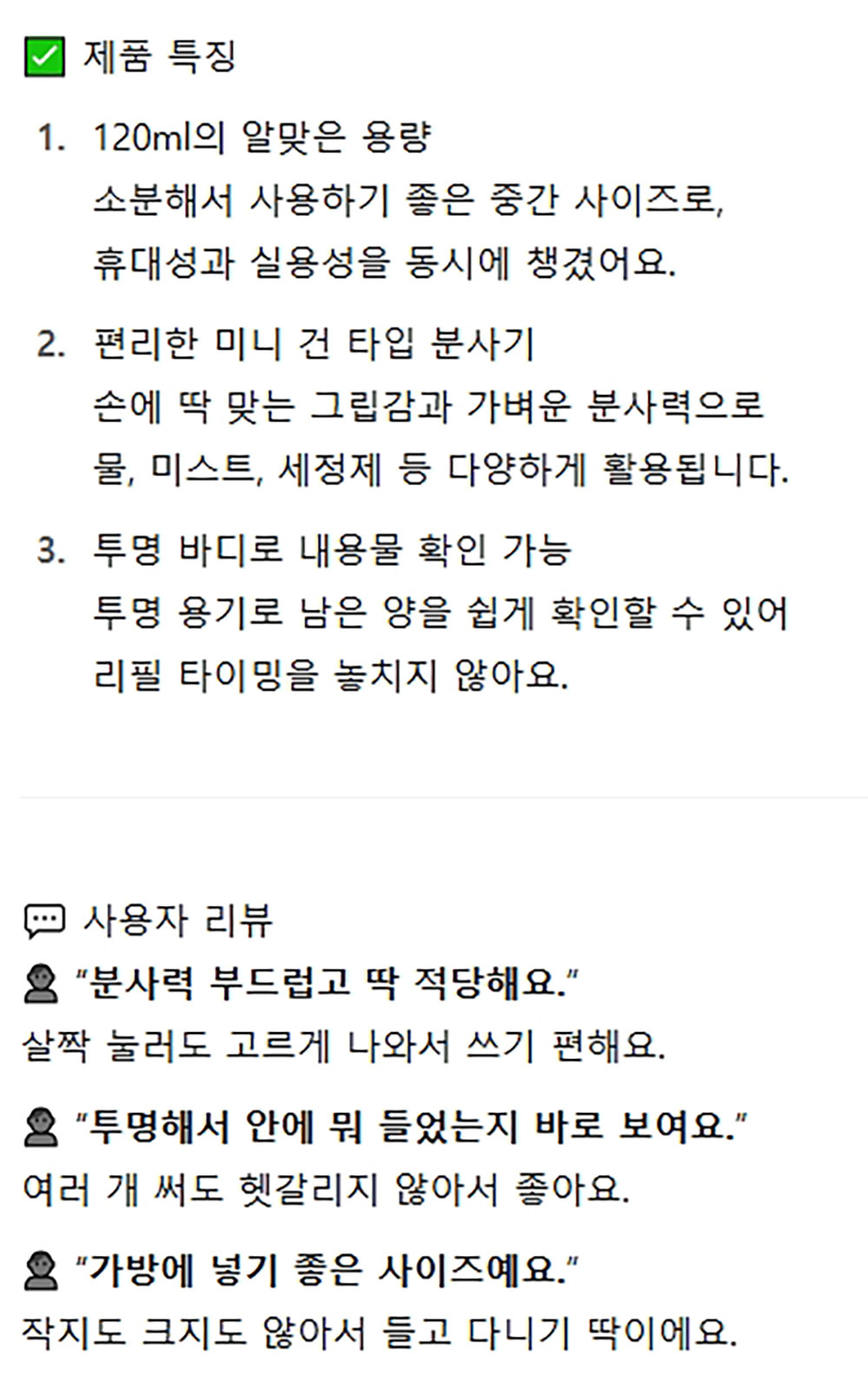 들고 다니기 좋아요 여행용 리필 스프레이건 120ml