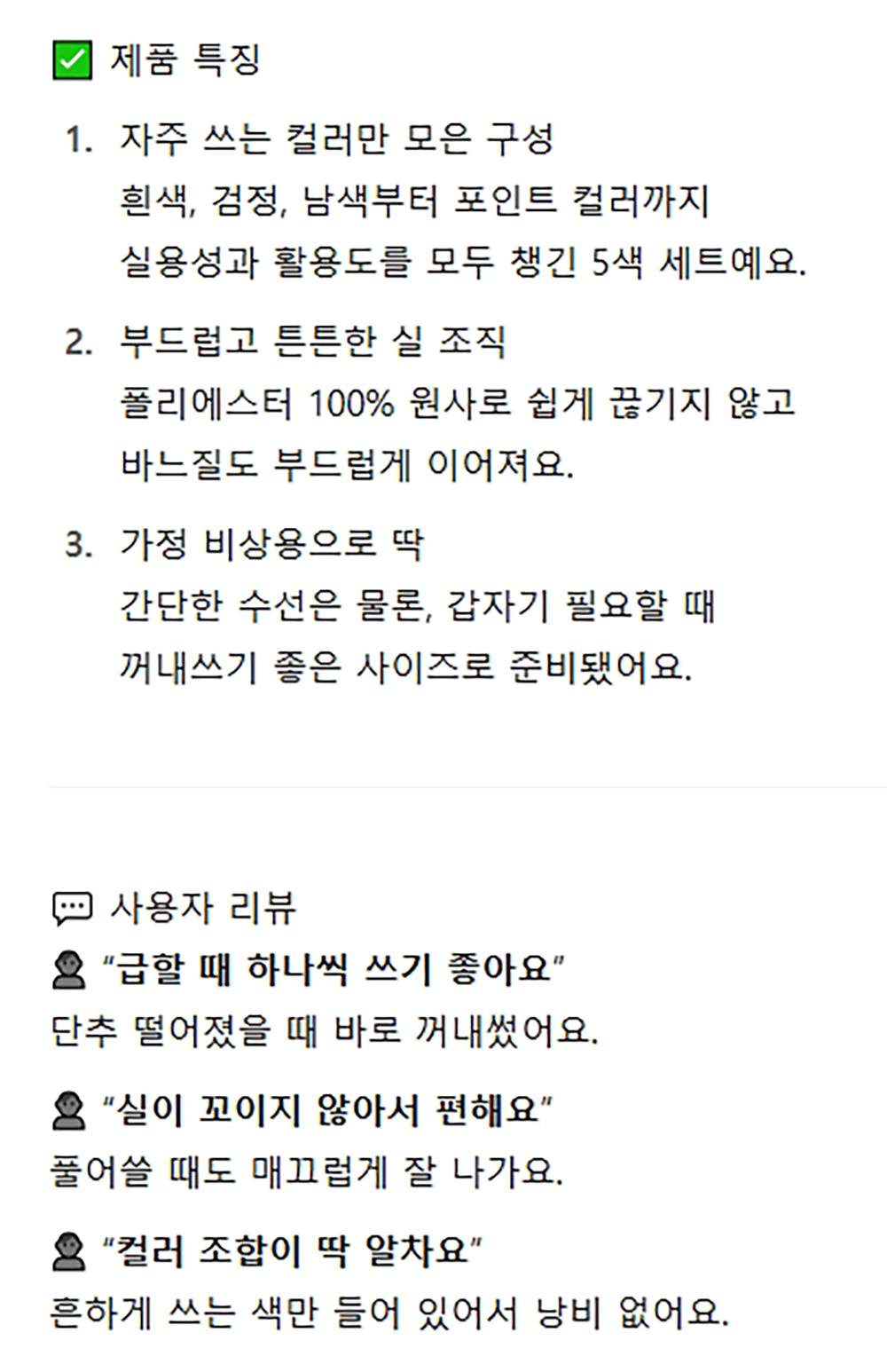 실용성과 활용도를 모두 챙긴 수선 바느실 5색 세트