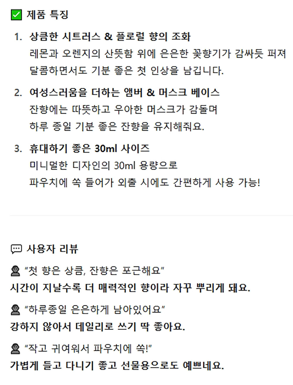 상큼한 시트러스 플로럴 향의 조화 여성향수 30ml