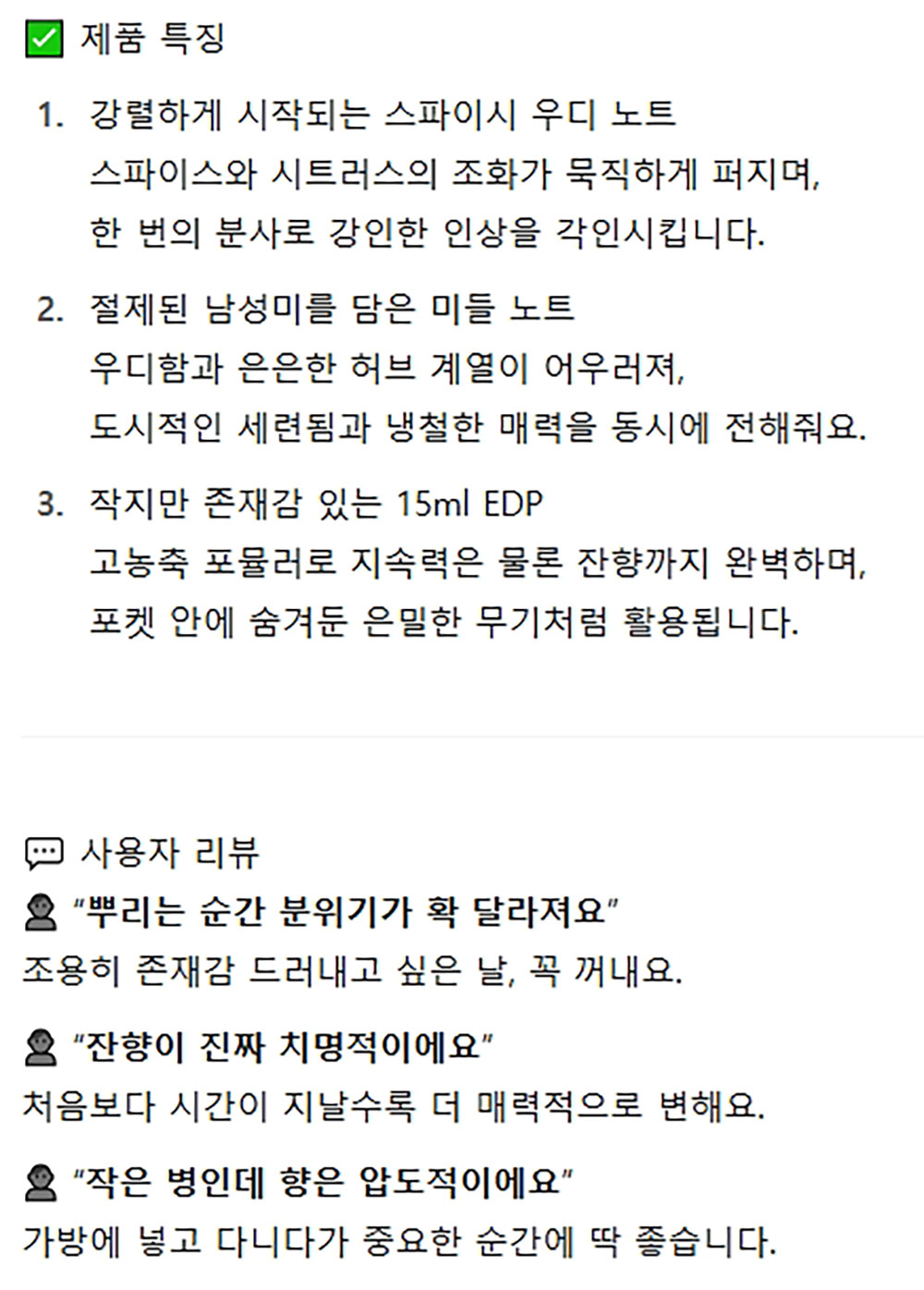 강렬하게 시작되는 스파이시 우드 퍼퓸 남성향수 15ml