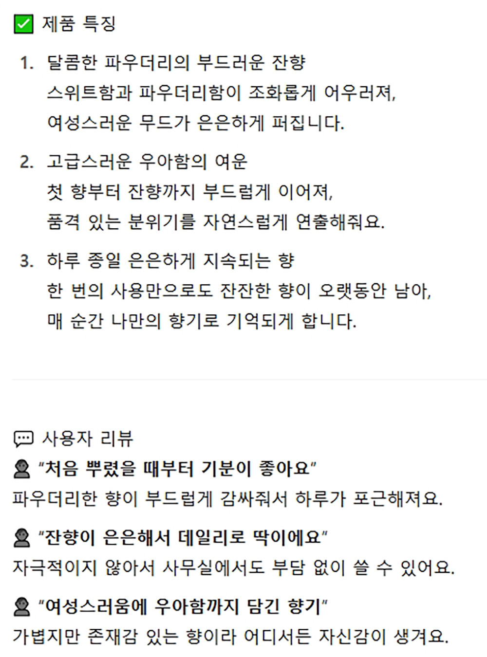 달콤한 파우더리의 부드러운 잔향 퍼퓸 여성향수 50ml