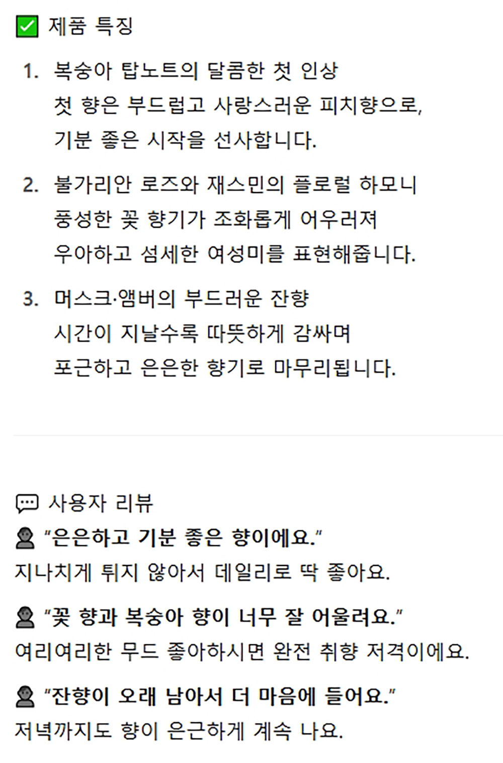 복숭아 탑노트의 달콤한 첫 인상 퍼퓸 여성향수 50ml
