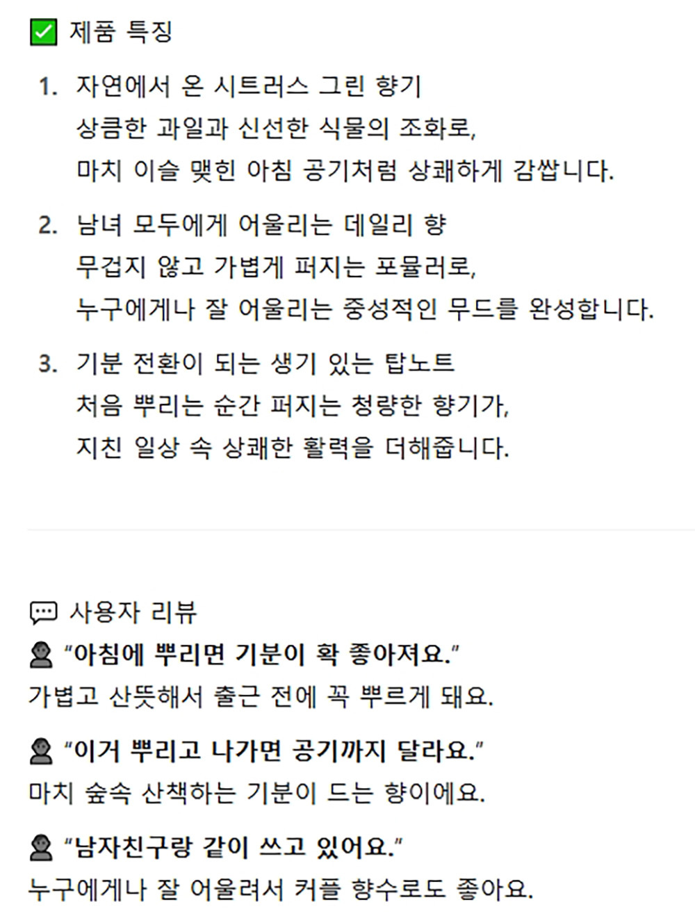 자연에서 온 시트러스 그린 향기 남녀 공용향수 100ml