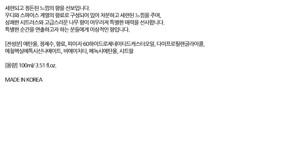 우디 스파이스 세련된 잔향 퍼퓸 남성향수 100ml