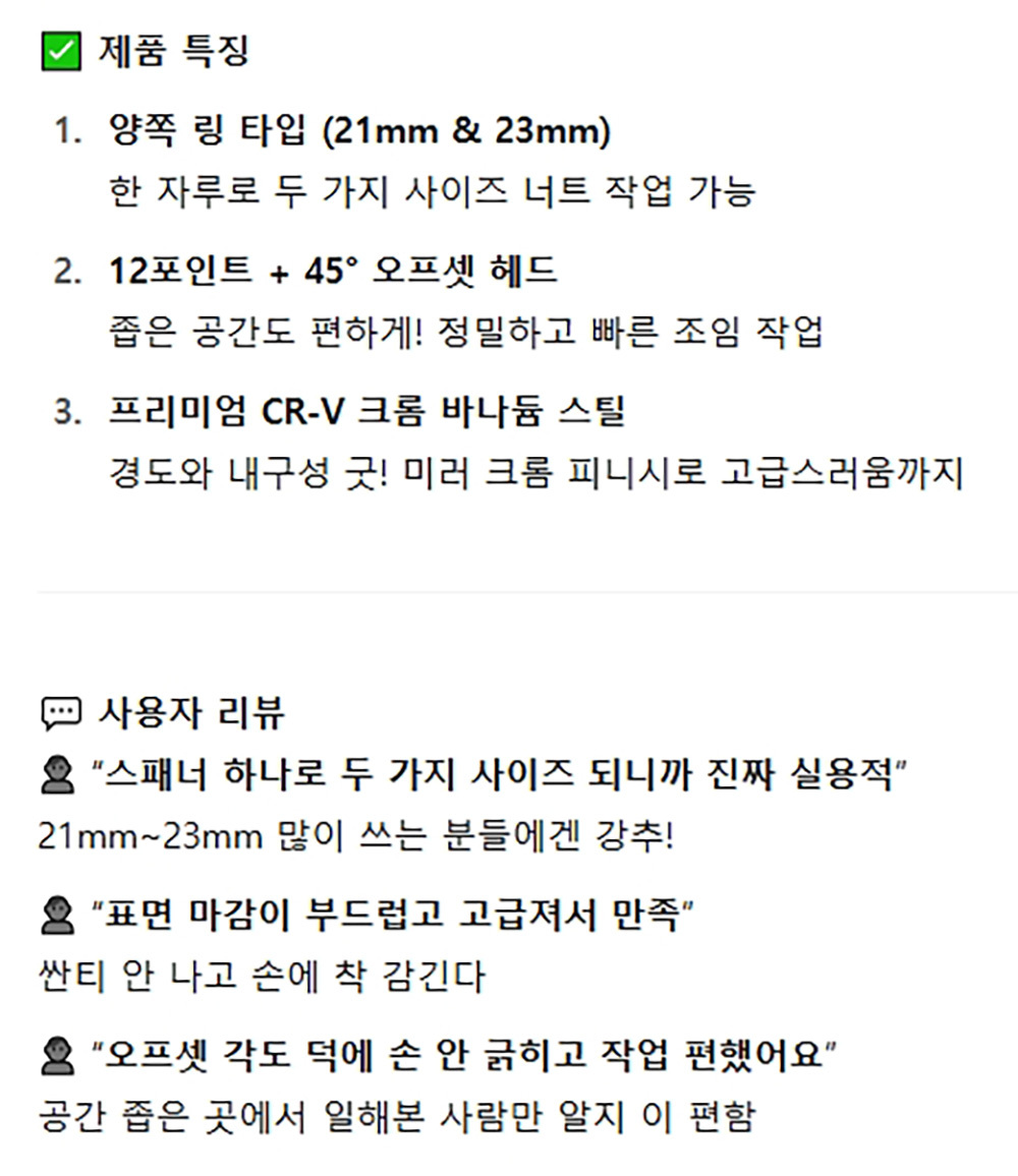두가지 사이즈 너트 작업가능 더블링 스패너 21-23mm