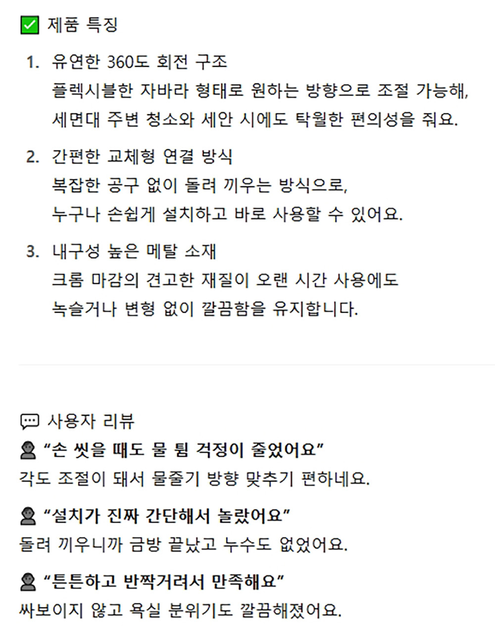 유연한 360도 회전구조 주방용 매직 교체형 자바라