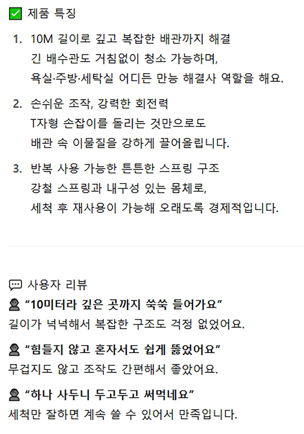 긴 배구관 거침없이 청소 가능 스프링 청소기 10m