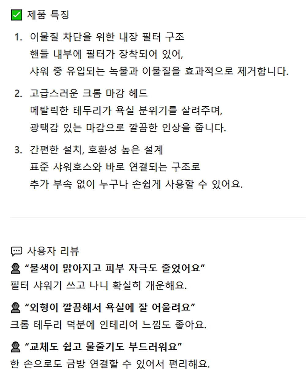 이물질 차단을 위한 내장필터 크롬 필터형 샤워헤드