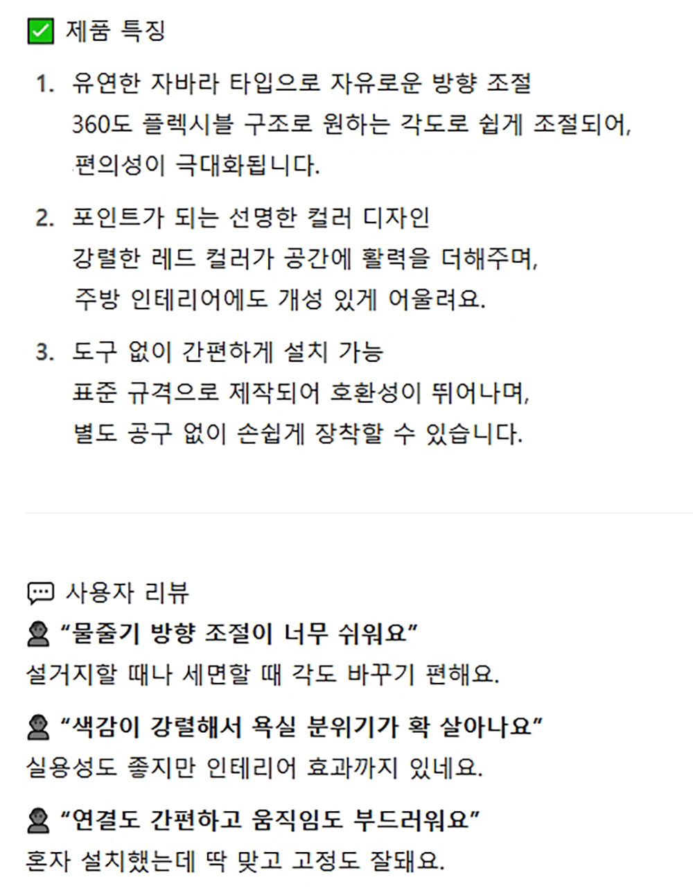 유연한 자바라 자유롭게 방향조절 싱크대 자바라 레드