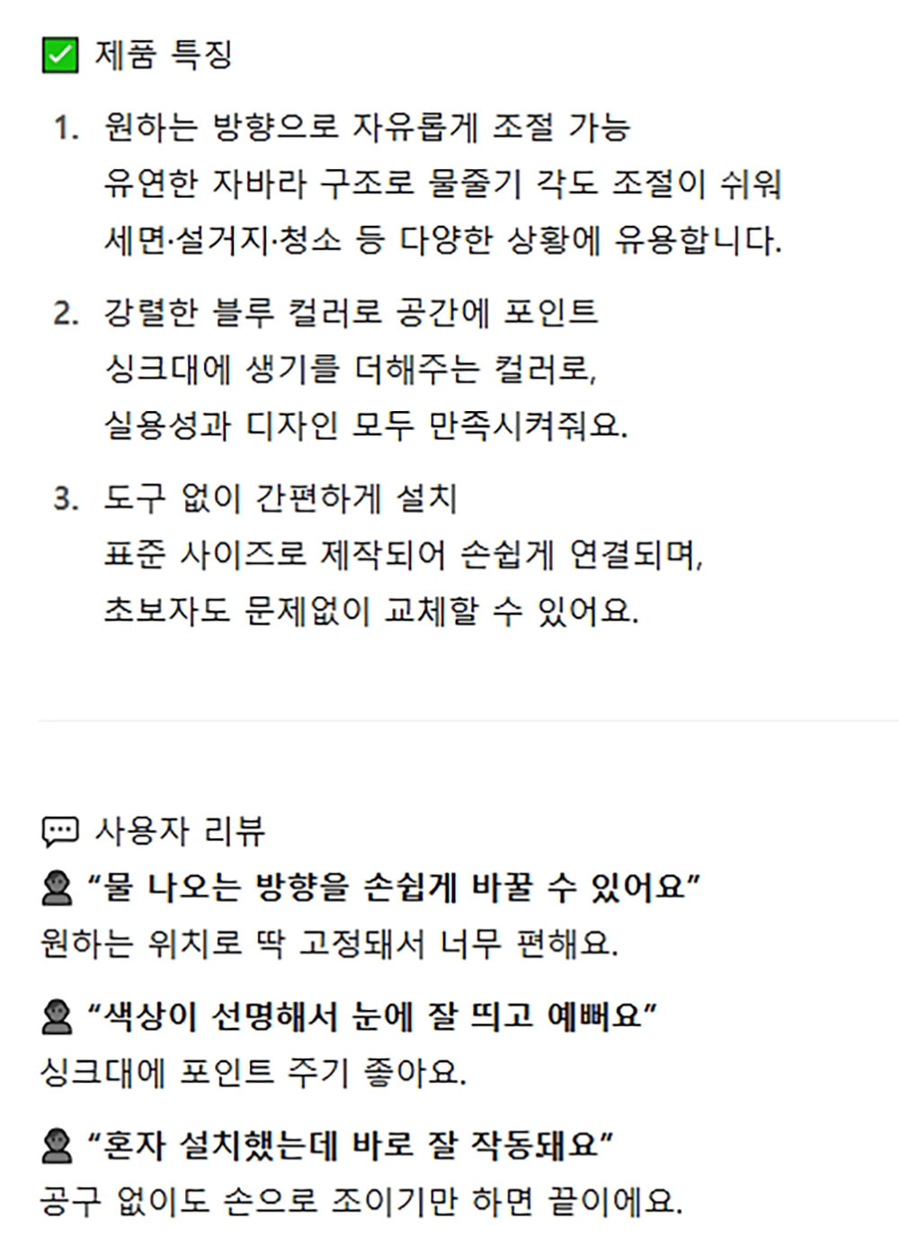 유연한 자바라 자유롭게 방향조절 싱크대 자바라 블루